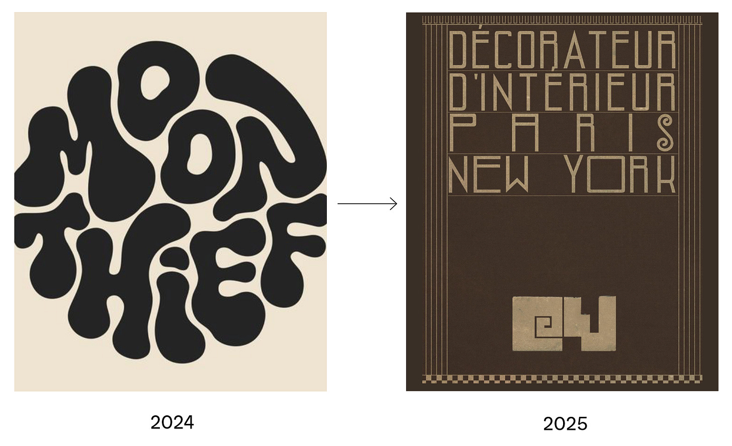 In graphics, I’m seeing a push towards some really Romanesque, classic European type. I love a super classic font, with lots of kerning. I also see art-deco inspiration headed our way when it comes to type and logos. It’s traditional, but with a European twist. I think we are done with the wavy and wiggly, natural forms of the early 2020s.